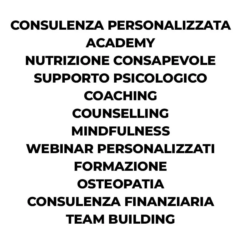 - Supporto psicologico, coaching e counseling per il benessere emotivo.